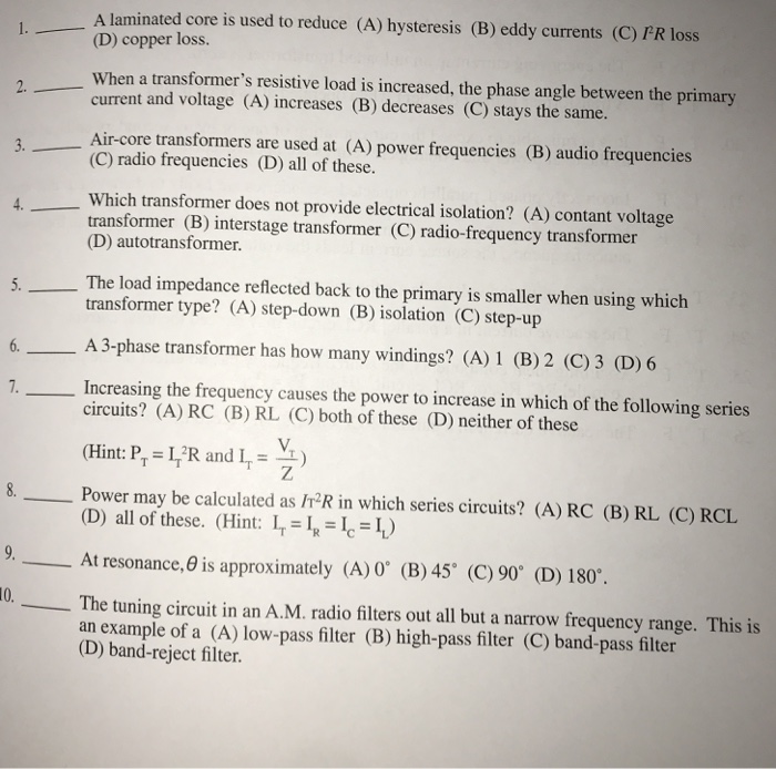 Asked mar 24 2018 in physics by paayal 147k points the core of any transformer is laminated so as to a reduce the energy loss due to eddy currents b make it light weight.