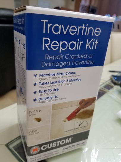 Custom building products travertine repair kit is a complete kit to repair cracked or damaged travertine.